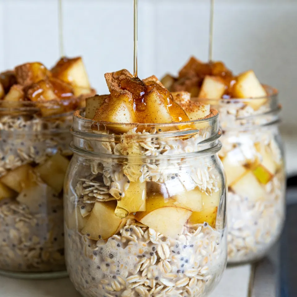 A delicious and nutritious overnight oats recipe featuring apples and cinnamon, perfect for a quick breakfast.