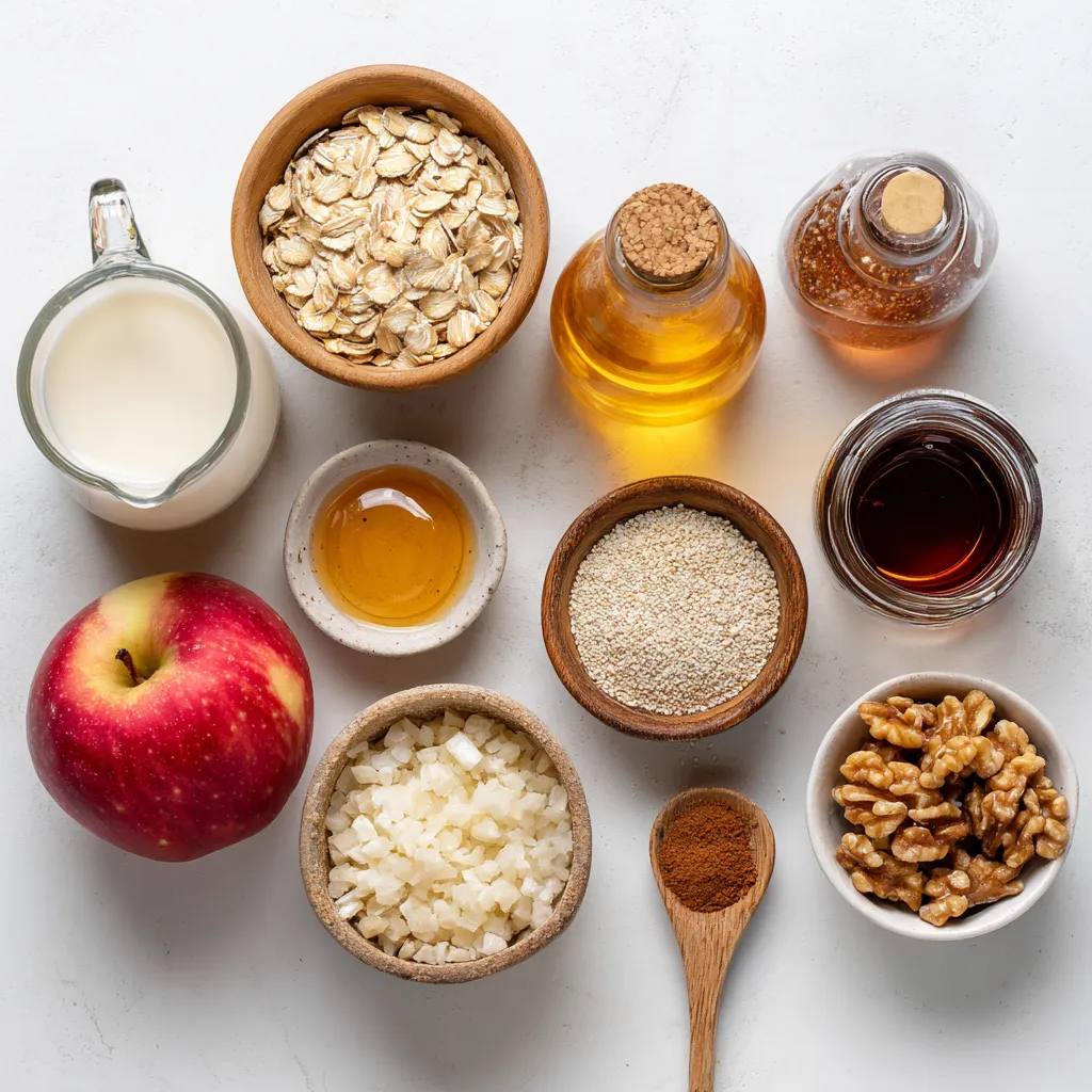 For a tasty bowl of apple pie overnight oats, gather these main ingredients:
