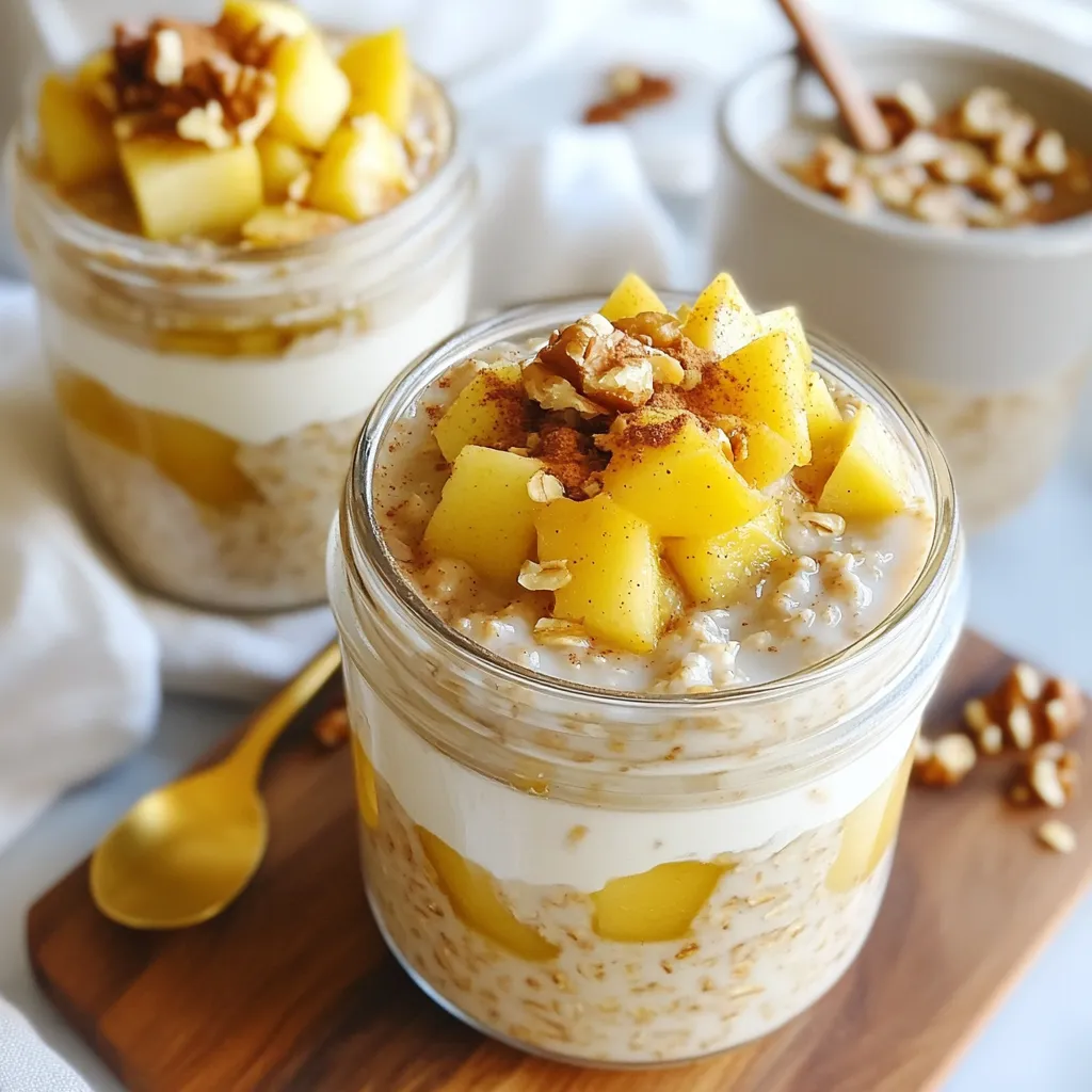 A delicious and healthy breakfast option that combines the flavors of apple pie with nutritious oats, perfect for a quick morning meal.