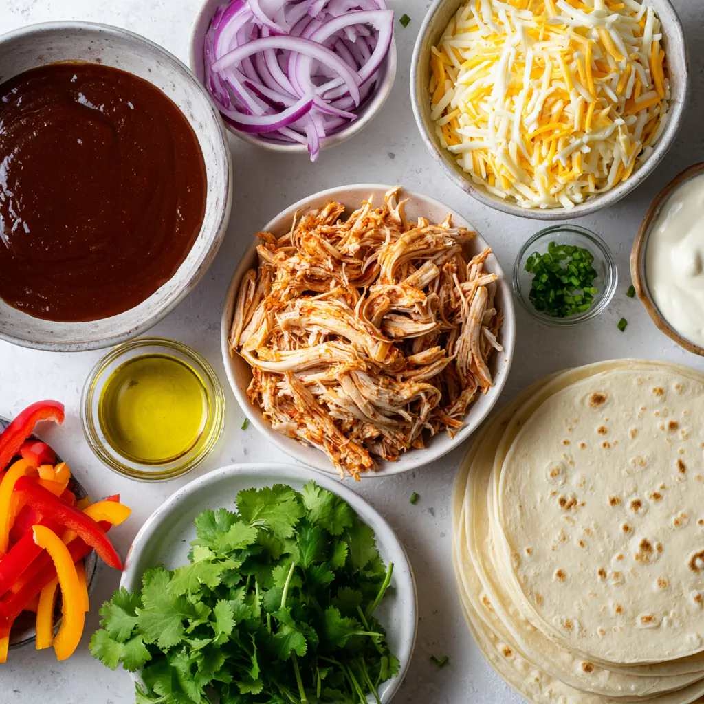 To make BBQ Ranch Chicken Quesadillas, you need fresh and tasty ingredients. Here’s what you need:
