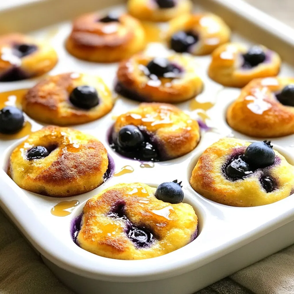 - 1 cup all-purpose flour - 2 tablespoons granulated sugar - 1 tablespoon baking powder - 1/2 teaspoon salt - 1 cup milk (preferably whole or 2%) - 1 large egg - 2 tablespoons unsalted butter, melted (plus extra for greasing) - 1 cup fresh blueberries, rinsed and drained - Maple syrup (for drizzling during serving) You can make this recipe work for different diets. For a gluten-free option, use a gluten-free flour blend. If you prefer a dairy-free version, swap the milk for almond or oat milk. You can also skip the egg and use a flaxseed egg instead. Just mix one tablespoon of ground flaxseed with three tablespoons of water and let it sit for a few minutes until it thickens. These swaps still keep the tasty flavor and soft texture you want in your pancake bites! {{ingredient_image_2}} First, preheat your oven to 350°F (175°C). While it heats, grab a mini muffin tin. Grease each cup with melted butter. This step helps prevent the bites from sticking. Next, mix the dry ingredients. In a large bowl, combine 1 cup of all-purpose flour, 2 tablespoons of granulated sugar, 1 tablespoon of baking powder, and 1/2 teaspoon of salt. Whisk them together until evenly mixed. Now, switch to a medium bowl for the wet ingredients. Whisk together 1 cup of milk, 1 large egg, and 2 tablespoons of melted butter. Make sure this mixture is smooth and blended well. Slowly pour the wet mixture into the dry mix. Gently stir with a spatula until just combined. It’s okay if the batter has a few lumps. Overmixing can make it tough. Carefully fold in 1 cup of rinsed and drained blueberries. Make sure they are evenly spread in the batter, but don't over-mix. This will help keep the berries intact. Using a spoon or small ice cream scoop, fill each greased muffin cup three-quarters full with batter. Be careful not to overfill them! They need room to rise. Place the muffin tin into the preheated oven. Bake for about 12-15 minutes. They are ready when they are golden brown. Insert a toothpick into the center of one. If it comes out clean, they are done. Once baked, remove the tin from the oven. Let the pancake bites cool in the tin for a few minutes. After that, transfer them to a wire rack to cool slightly. For serving, place the warm bites in a bowl or on a platter. Drizzle with maple syrup and add a few extra blueberries on top. This makes for a lovely presentation. Enjoy these fluffy blueberry pancake bites for breakfast or as a sweet snack! To make the best blueberry pancake bites, avoid common mistakes. One big mistake is overmixing the batter. This can make your bites tough. Mix just until the dry and wet ingredients come together. A few lumps are okay! For fluffy pancake bites, use fresh ingredients. The baking powder should be fresh for the best rise. Also, make sure your oven is preheated. This helps your bites cook evenly. You can easily customize your pancake bites. Add different fruits like strawberries or bananas. You can also mix in flavorings like vanilla or almond extract for a twist. If you need gluten-free bites, substitute all-purpose flour with a gluten-free blend. For dairy-free bites, use almond milk or coconut milk instead of regular milk. These swaps keep the bites delicious while meeting dietary needs. Pro Tips Use Fresh Blueberries: Fresh blueberries provide the best flavor and texture. If using frozen, ensure they are thawed and drained well to avoid excess moisture in the batter. Don’t Overmix: When combining wet and dry ingredients, mix just until combined. A few lumps are okay; overmixing can result in dense pancake bites. Check for Doneness: Baking times may vary slightly based on your oven. Start checking at 12 minutes; they’re done when golden brown and a toothpick comes out clean. Experiment with Flavors: Add a dash of vanilla extract or a sprinkle of cinnamon to the batter for an extra flavor boost. You can also mix in chopped nuts for added crunch! {{image_4}} You can easily change up the flavor of your blueberry pancake bites. One fun way is to add lemon zest. This brightens the taste and gives a fresh zing. Just add a teaspoon of lemon zest to the batter. Another option is to sprinkle in some cinnamon. A half teaspoon adds warmth and spice. If you're feeling extra indulgent, try chocolate chip blueberry pancake bites. Just mix in half a cup of chocolate chips with the blueberries. This gives a sweet twist that kids love. Toppings can elevate your pancake bites. A drizzle of maple syrup adds sweetness. You can also try honey or yogurt for a creamy finish. Fresh fruit like strawberries or raspberries make a colorful touch. Pair them with a fruit smoothie for a fun breakfast. They also work great as a snack or dessert. Serve them warm for the best taste. To keep your blueberry pancake bites fresh, store them properly. Place the cooled bites in an airtight container. They last for about 3-4 days in the fridge. If you want to keep them longer, freeze them. Place the bites in a freezer-safe bag or container. They can stay frozen for up to 3 months. When you're ready to enjoy your pancake bites again, reheating is easy. You can use a microwave, oven, or toaster oven. For the microwave, heat for about 15-20 seconds. If using the oven, preheat it to 350°F (175°C) and warm them for about 5-7 minutes. This method keeps them fluffy. Toaster ovens work well too; just keep an eye on them to avoid overcooking. Enjoy your bites warm with maple syrup! Yes, you can make these pancake bites ahead of time. Simply bake them and let them cool. Store them in an airtight container for up to three days in the fridge. You can also freeze them for up to a month. Just reheat them in the oven or microwave when you're ready to enjoy. If you want to switch things up, try using raspberries, chopped strawberries, or diced bananas. You can even use chocolate chips for a sweet twist. Each fruit offers a unique flavor and texture, making these bites fun and versatile. When making larger batches, use multiple 