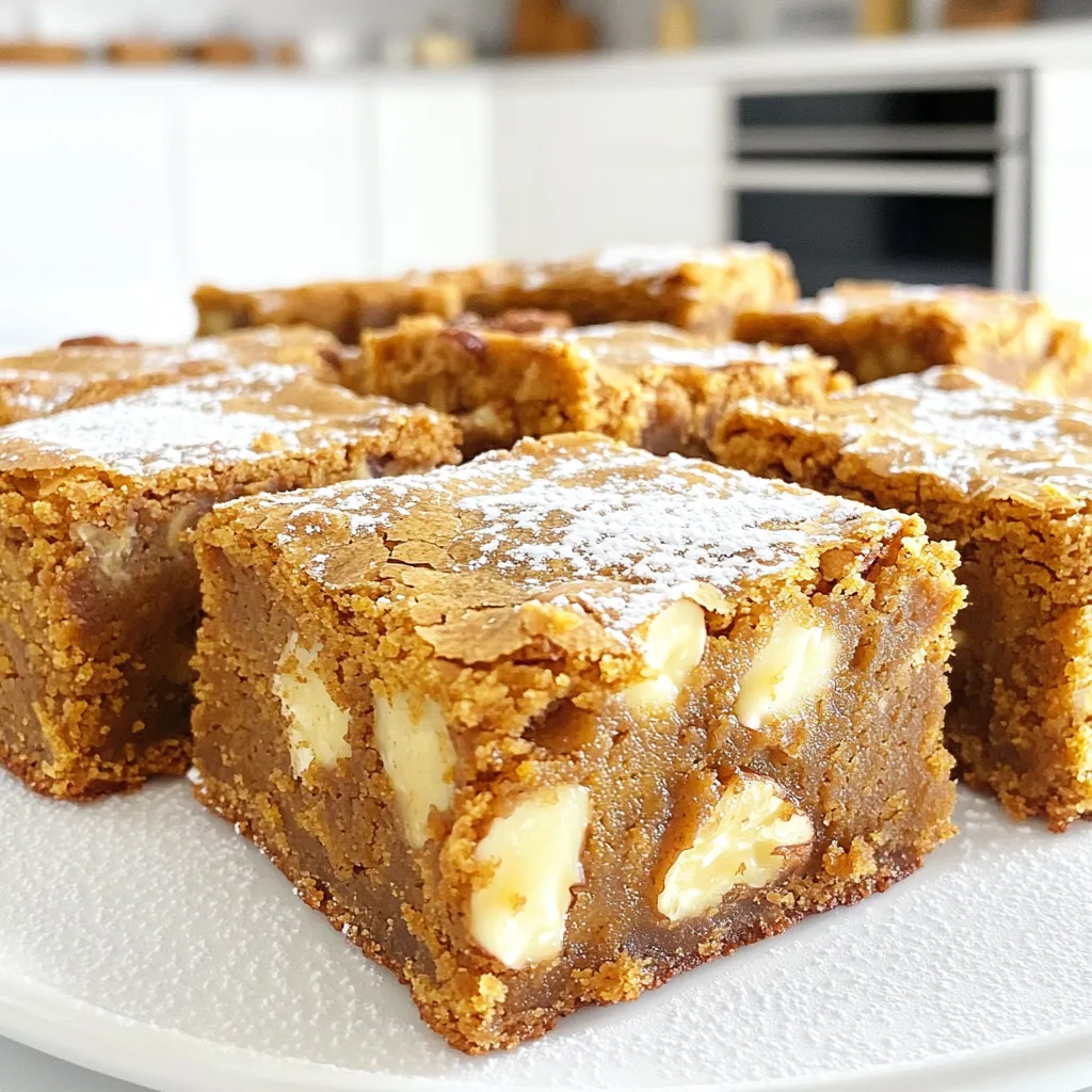 When serving blondies, cut them into squares for a neat look. You can dust them with powdered sugar for a sweet touch. For a warm treat, serve them with a scoop of vanilla ice cream on top. This adds creaminess and balances the spice.