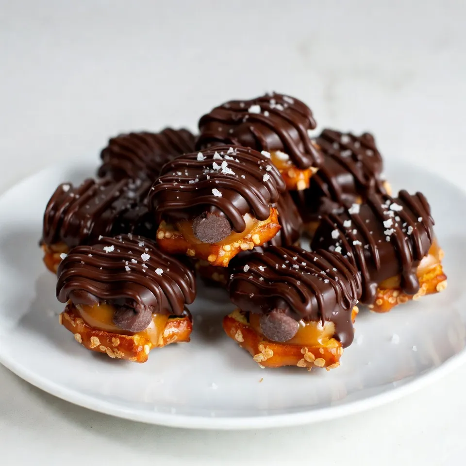 - 1 cup mini pretzel twists - 1 cup chocolate chips (semi-sweet or milk chocolate) - 1 cup caramel candies, unwrapped - 1 tablespoon heavy cream (optional) - Sea salt, for a finishing sprinkle To make these treats, you need just a few simple ingredients. The mini pretzel twists bring the salty crunch. The chocolate chips offer rich sweetness, while the caramel candies add a gooey texture. If you want your chocolate drizzle to be smooth, use heavy cream. A sprinkle of sea salt at the end adds a nice touch. - Chopped nuts (like pecans or almonds) - Different types of chocolate (dark or white chocolate) - Flavored caramel (like sea salt or vanilla) - Crushed candies or sprinkles You can play with your ingredients. Chopped nuts add crunch and flavor. If you love dark chocolate, swap the semi-sweet chips. You can also try flavored caramel for a fun twist. Adding crushed candies or colorful sprinkles can make your bites even more festive. - Pretzels: Snyder’s, Rold Gold - Chocolate chips: Ghirardelli, Nestlé Toll House - Caramel candies: Kraft, Werther’s Original For the best taste, I recommend using reliable brands. Snyder’s and Rold Gold make great pretzels. Ghirardelli and Nestlé Toll House offer rich chocolate chips. Kraft and Werther’s Original are known for their delicious caramel candies. Using these brands will help you create the perfect Chocolate Caramel Pretzel Bites. {{ingredient_image_2}} First, turn on your oven and set it to 350°F (175°C). Next, grab a baking sheet and line it with parchment paper. This keeps the bites from sticking and makes clean-up easy. Now, spread out 1 cup of mini pretzel twists on the baking sheet. Make sure they don’t touch or overlap. This will help each bite cook evenly. Place 1 caramel candy on top of each pretzel. Center it well so it melts nicely during baking. Bake the pretzels in the oven for about 5 to 7 minutes. Keep an eye on them. You want the caramel to soften but not melt completely. After baking, take the tray out and let it cool for 2 minutes. This helps the caramel firm up a bit. Now, gently press a chocolate chip into each caramel. Make sure it sinks slightly for a good fit. For the chocolate drizzle, melt any leftover chocolate chips in a microwave-safe bowl. If you want a smooth drizzle, stir in 1 tablespoon of heavy cream. Heat it in 15-second bursts, mixing in between. Once melted, drizzle the chocolate over each pretzel bite. You can use a spoon or a piping bag for fun designs. Finally, sprinkle a touch of sea salt on top for extra flavor. Let the bites cool completely at room temperature or speed it up in the fridge. To get the best caramel texture, watch the bake time. Bake the pretzels with caramel for just 5 to 7 minutes. This softens the caramel without making it too gooey. Look for a soft but still shaped caramel. Let them cool for 2 minutes before adding chocolate. This cooling time helps the caramel firm up a bit. For smooth melted chocolate, use a microwave-safe bowl. Heat chocolate chips in 15-second bursts. Stir between each burst to avoid burning. If you want a creamier drizzle, add 1 tablespoon of heavy cream. This makes the chocolate nice and smooth. Keep stirring until the chocolate is fully melted. To drizzle chocolate evenly, use a spoon or a piping bag. If you use a piping bag, cut a small tip to control the flow. Drizzle the chocolate in a zigzag pattern for a fun look. Don't forget to sprinkle a little sea salt on top. This adds a nice touch to the sweet and salty mix. For a great display, arrange the bites on a nice platter. Pro Tips Use Fresh Caramels: Ensure your caramel candies are fresh for the best melting result. Stale caramels may not soften properly and can affect the texture. Choose the Right Chocolate: Semi-sweet or milk chocolate can be used based on your preference. For a richer flavor, consider using dark chocolate. Drizzle with Care: If using a piping bag for the chocolate drizzle, make sure the tip is small for precise control over the design. Experiment with Toppings: Feel free to add toppings such as crushed nuts or sprinkles along with the sea salt for added texture and flavor variations. {{image_4}} You can switch up the flavor of your Chocolate Caramel Pretzel Bites easily. Try using dark chocolate for a richer taste. Dark chocolate pairs well with the sweet caramel. You can also use flavored caramels like sea salt or vanilla. These small changes can create a new twist on the classic treat. Not everyone can enjoy regular pretzels. If you need gluten-free options, look for gluten-free pretzel brands. Many stores now sell them. You can also use dairy-free chocolate chips for a vegan treat. These swaps let everyone enjoy this sweet and salty snack. Want to make your pretzel bites even more fun? Add crushed candies on top. Crushed peppermint or toffee bits can add a great crunch. Sprinkles can also make your bites colorful and festive. You can even mix in nuts like chopped pecans or almonds for extra flavor and texture. Each of these twists makes your Chocolate Caramel Pretzel Bites unique and exciting. To keep your Chocolate Caramel Pretzel Bites fresh, use an airtight container. This helps lock in flavor and prevent them from getting stale. You can store them at room temperature for up to a week. If you live in a hot area, it’s best to keep them in the fridge. This will help maintain their texture and taste. To extend the shelf life, you can freeze the pretzel bites. Wrap each bite in plastic wrap or foil, then place them in a freezer bag. They can last for up to three months in the freezer. When you're ready to enjoy them, just take them out and let them thaw at room temperature. This method preserves the sweet and salty flavor perfectly. If you have leftovers, you may want to warm them up. Preheat your oven to 300°F (150°C). Place the pretzel bites on a baking sheet and heat for about 5 minutes. This helps melt the chocolate slightly and revives the caramel’s gooey texture