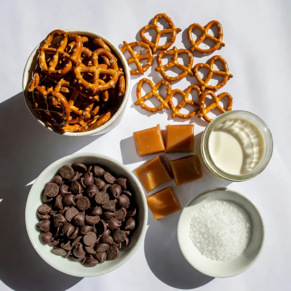 To make these treats, you need just a few simple ingredients. The mini pretzel twists bring the salty crunch. The chocolate chips offer rich sweetness, while the caramel candies add a gooey texture. If you want your chocolate drizzle to be smooth, use heavy cream. A sprinkle of sea salt at the end adds a nice touch.