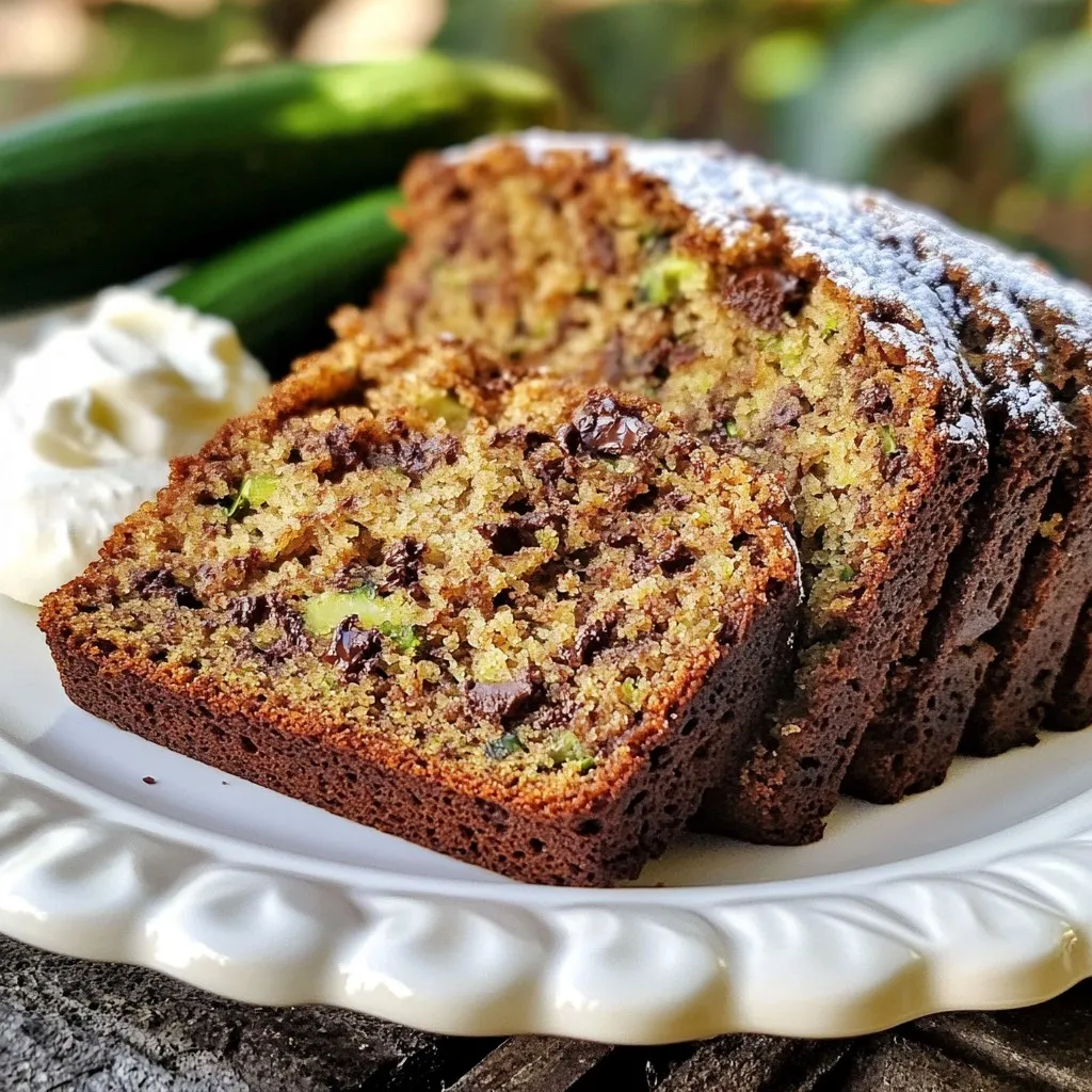 Slice the warm zucchini bread and serve each slice with a light dusting of powdered sugar on top. For an added touch, accompany with a dollop of creamy cheese spread on the side. Garnish your platters with a few extra chocolate chips and a sprig of fresh mint for a delightful and colorful presentation.