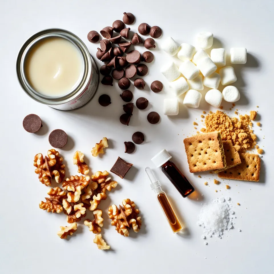 Fold in the Crunchy Ingredients: Gently fold in the graham cracker crumbs, chopped walnuts, and mini marshmallows. Use a spatula to ensure they are evenly distributed throughout the fudge mixture without crushing the marshmallows.