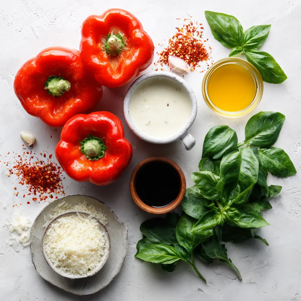 Prepare the Sauce: Peel the charred skin from the cooled peppers and chop the flesh. In a blender, combine the roasted peppers, heavy cream, minced garlic, and crushed red pepper flakes. Blend until smooth.