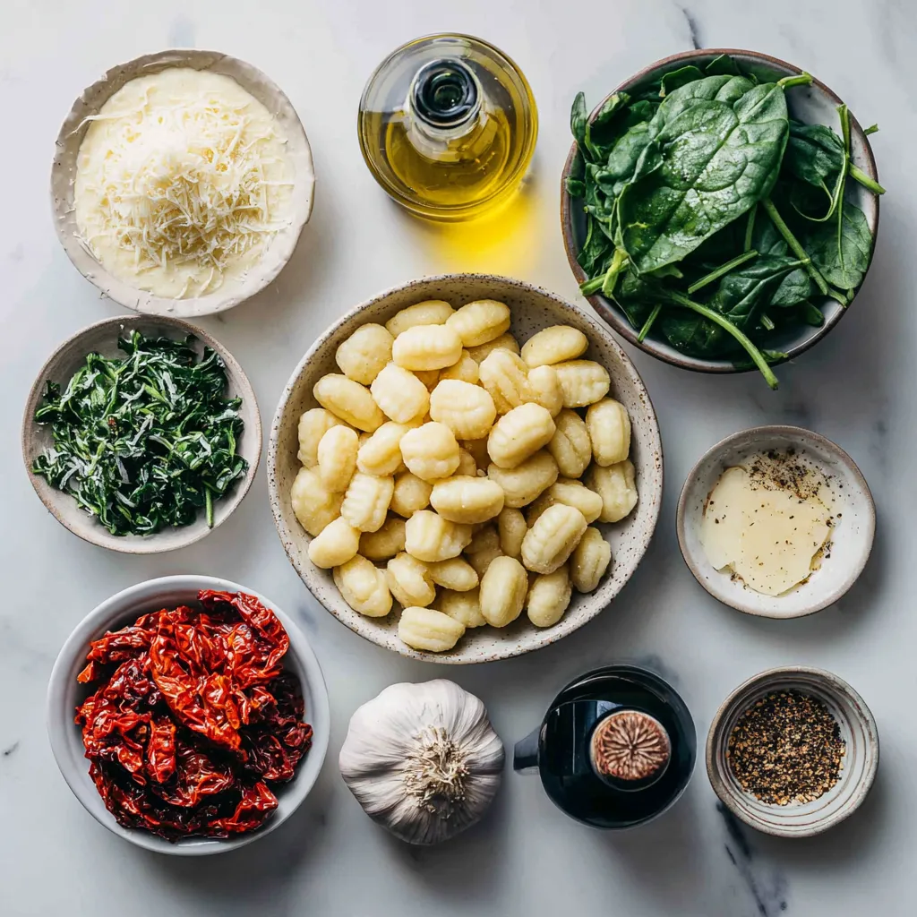 Gather these ingredients for a rich and tasty meal. The fresh spinach adds color and nutrients. The store-bought gnocchi makes it easy and quick. Heavy cream gives the dish its creamy texture.