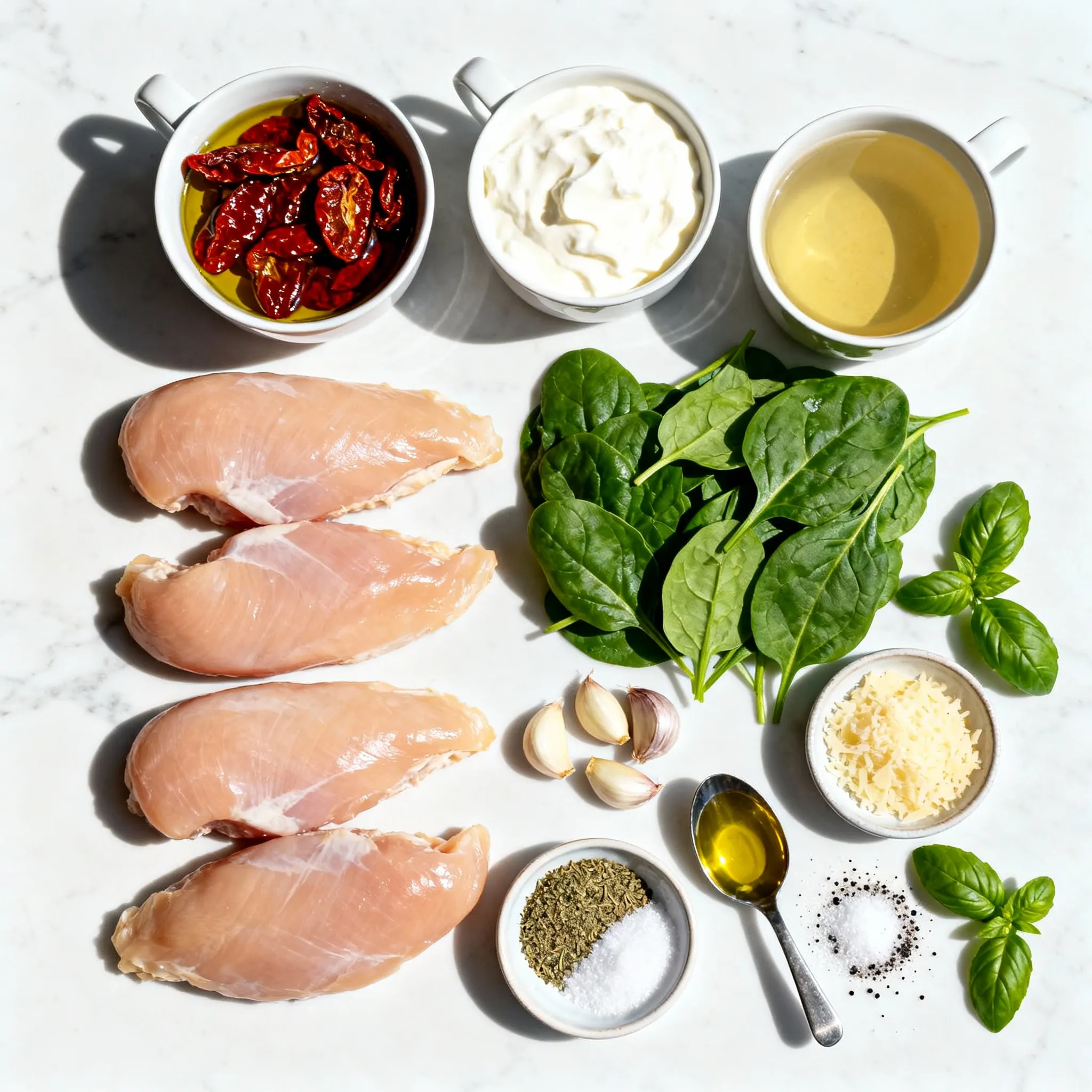 For this creamy sun-dried tomato chicken, each ingredient plays a key role. The chicken breasts provide a tender and juicy base. Sun-dried tomatoes offer a rich, tangy burst of flavor. Heavy cream gives the sauce its luscious creaminess, while chicken broth adds depth.