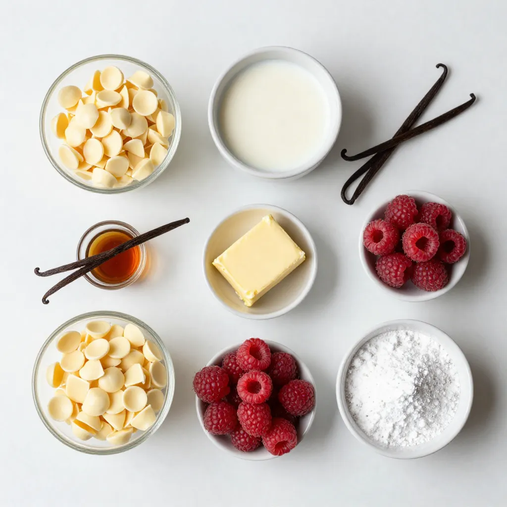 To create my creamy white chocolate raspberry fudge, I gather all the ingredients first. Each ingredient plays a vital role in the final taste and texture of the fudge.