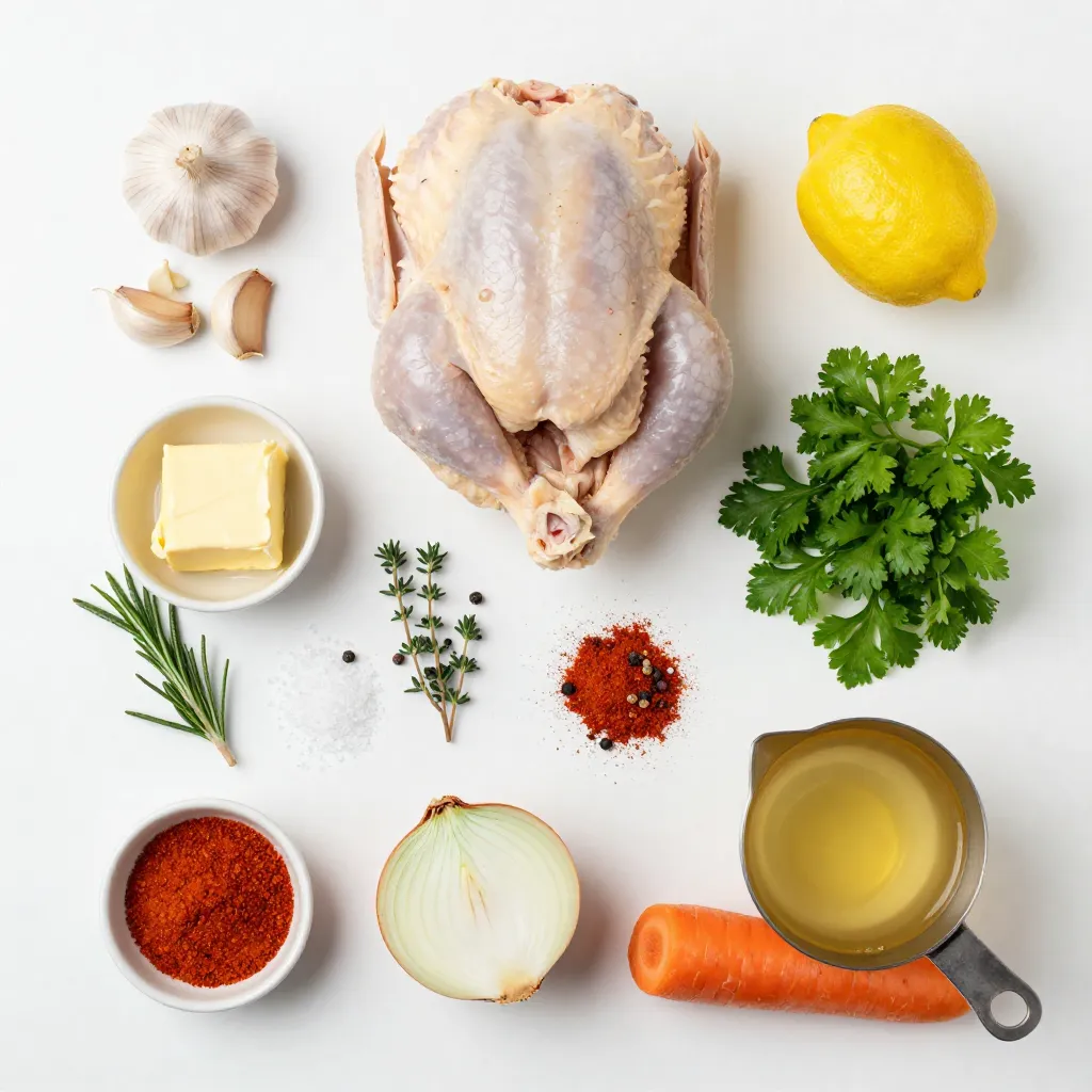 For aromatics, get one large onion, quartered, and one medium carrot, chopped. Lastly, have one cup of low-sodium chicken broth ready to keep the chicken moist while it roasts. Each ingredient contributes to a tasty and juicy chicken, perfect for family meals or gatherings.