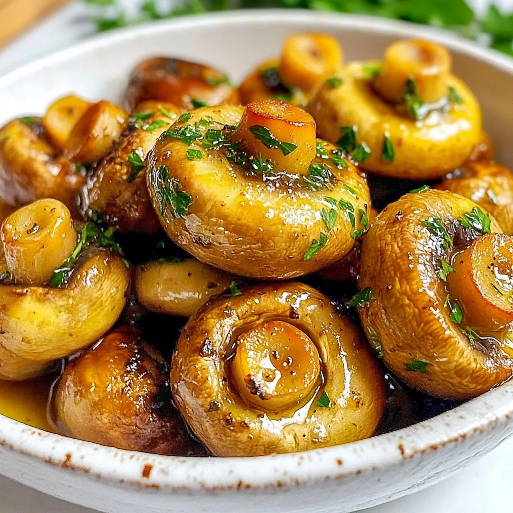 A delicious and aromatic dish featuring roasted button mushrooms with garlic and herbs.