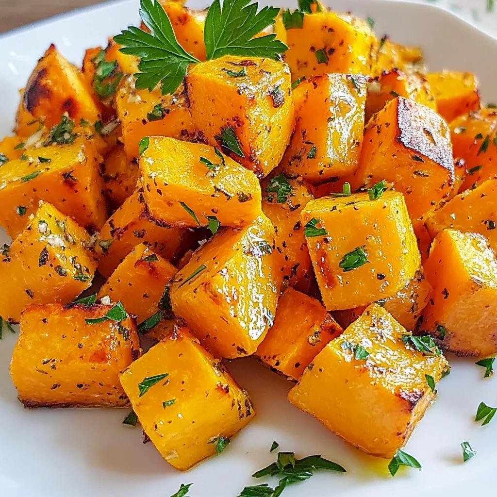 A delicious side dish featuring sweet potatoes roasted with garlic and herbs.