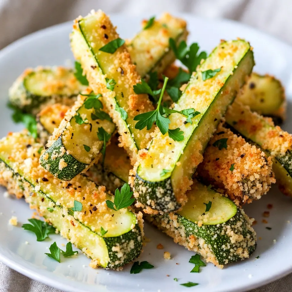 Deliciously crispy zucchini fries coated in garlic, Parmesan, and panko breadcrumbs.