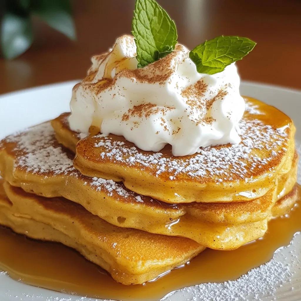For garnishing, consider adding a sprig of fresh mint or a cinnamon stick beside your stack. These simple touches elevate your dish and make it look even more inviting. Serve your pancakes warm with maple syrup and whipped cream to complete the festive experience.