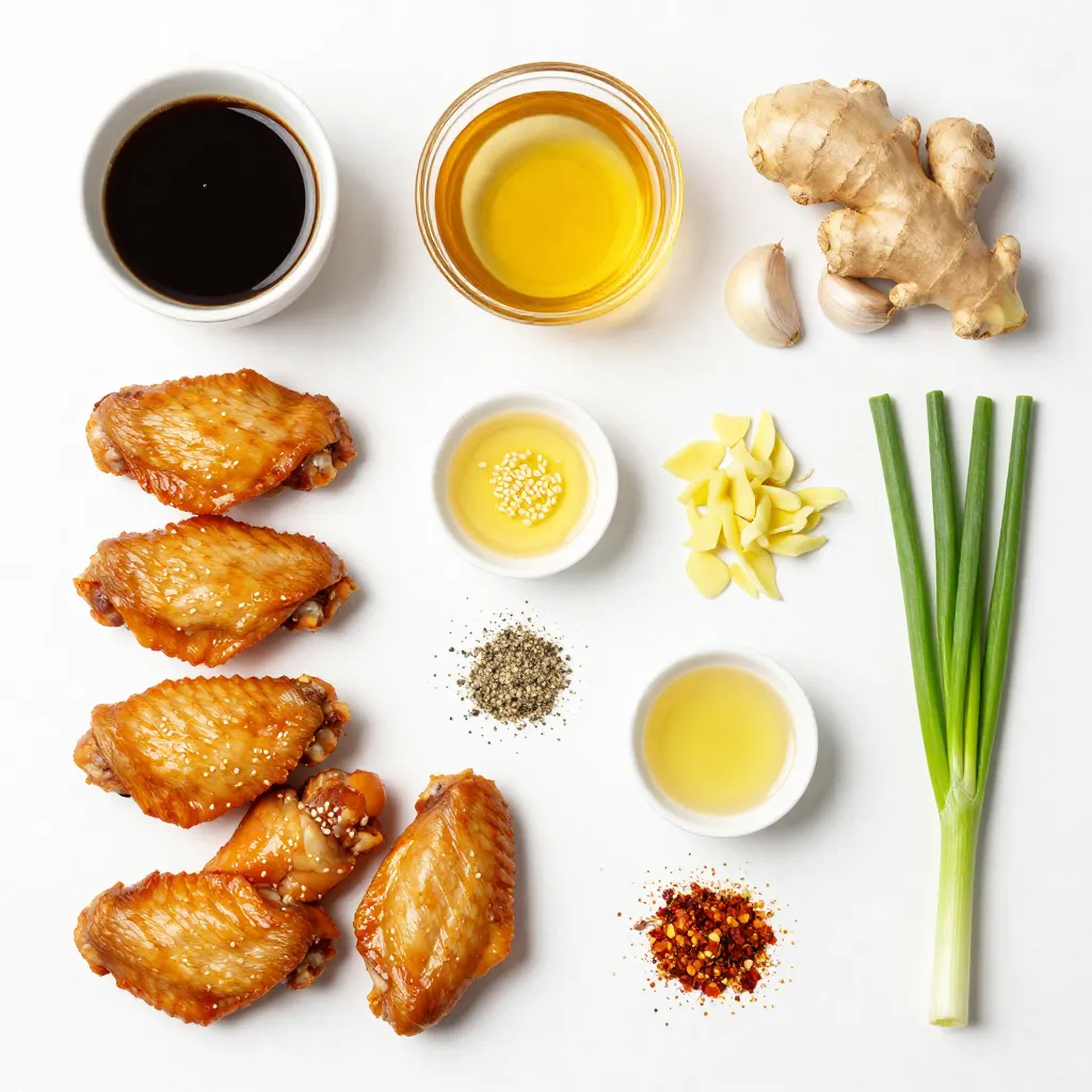 These main ingredients create the sweet and savory sauce for the wings. The soy sauce gives a rich umami flavor, while honey adds sweetness. Garlic and ginger bring warmth and depth to the dish.