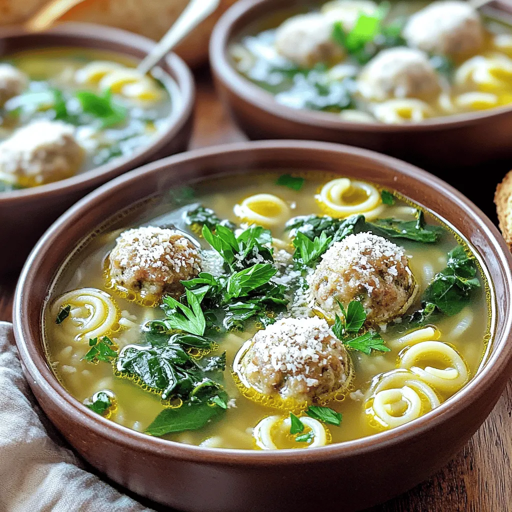 Italian Wedding Soup is known for its rich flavors. The main star is the ground turkey or chicken. This protein gives the soup a hearty base. Next, we have chicken broth. It adds depth and warmth. Fresh spinach brings a bright color and fresh taste.
