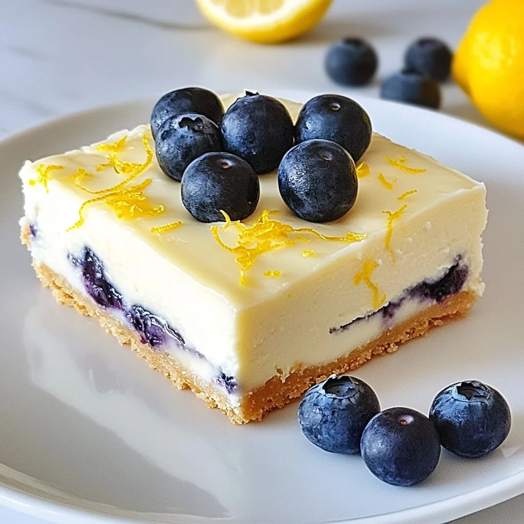 Presentation is key for any dessert. Arrange the cheesecake bars on a lovely platter to catch the eye. For an extra touch, garnish each square with fresh blueberries. A light dusting of lemon zest adds color and brightness. You can also serve them with a dollop of whipped cream for a delightful finish.