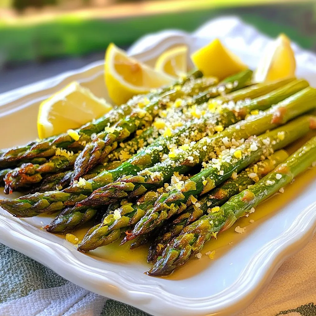 A flavorful and healthy side dish featuring roasted asparagus with a zesty lemon-garlic coating.