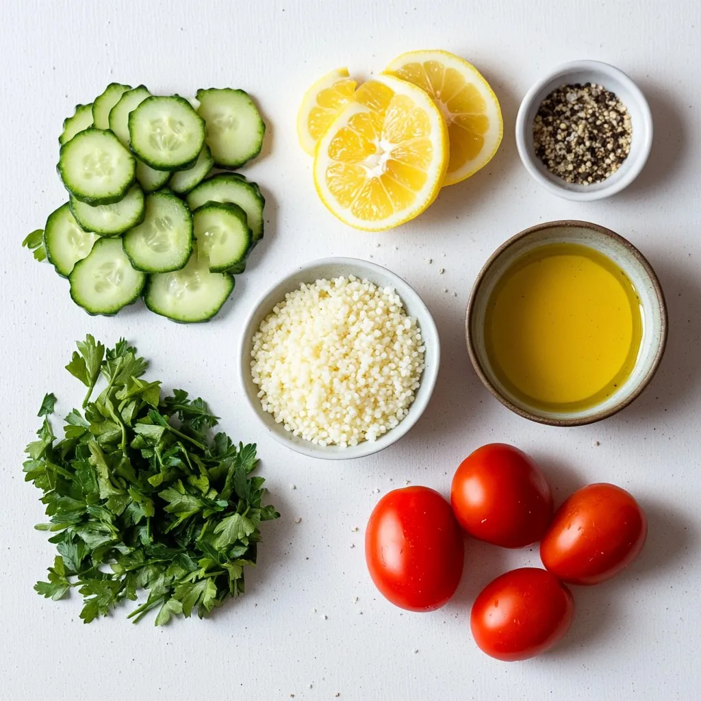 Start by gathering all your ingredients. You will need couscous, vegetable broth, olive oil, lemon zest, lemon juice, black pepper, sea salt, parsley, cherry tomatoes, and cucumber. Measure everything out first. This makes cooking easier and faster.