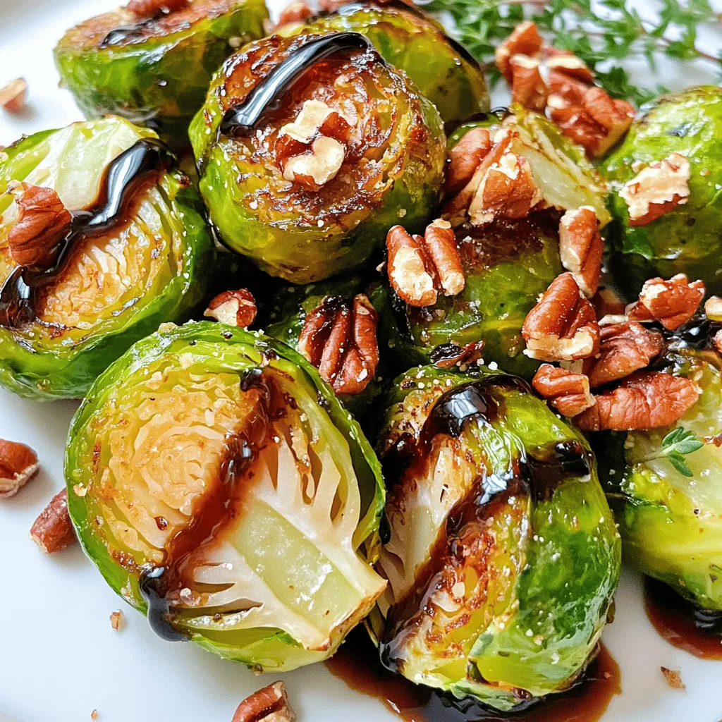 To make this dish, you need the following main ingredients: - 1 pound Brussels sprouts, trimmed and halved (about 450g) - 2 tablespoons extra-virgin olive oil - 1/4 cup balsamic vinegar (60ml) - 2 tablespoons pure maple syrup - 1 teaspoon Dijon mustard - 1/2 teaspoon garlic powder - 1/2 teaspoon salt (adjust to taste) - 1/4 teaspoon freshly ground black pepper These ingredients create a perfect balance of sweet and tangy flavors. The Brussels sprouts get tender while the outside crisps up nicely in the oven. You can enhance your dish with these optional ingredients: - 1/4 cup pecans, finely chopped (for added texture) - Fresh thyme sprigs (for visual appeal) Adding pecans gives a delightful crunch. Fresh thyme not only looks great but also adds a lovely aroma. If you need to make swaps for dietary needs, here are some great options: - Use sunflower oil instead of olive oil for a nut-free version. - Swap balsamic vinegar with apple cider vinegar for a different tang. - Maple syrup can be replaced with agave syrup for a vegan option. These substitutions keep the dish tasty while accommodating various diets. You can find the full recipe to get all the details you need and start cooking! Start with fresh Brussels sprouts. Look for firm, green ones. Trim the ends and cut them in half. This helps them cook evenly. Rinse them under cold water to remove dirt. In a large bowl, mix balsamic vinegar, maple syrup, Dijon mustard, garlic powder, salt, and black pepper. Whisk until smooth. This dressing will coat the Brussels sprouts and bring out their flavor. 1. Preheat your oven to 400°F (200°C). 2. Toss the halved Brussels sprouts with olive oil in the dressing bowl. Make sure every piece is coated. 3. Line a baking sheet with parchment paper. Spread the Brussels sprouts in a single layer. 4. Roast for 20-25 minutes. Stir them halfway to ensure even cooking. 5. For added crunch, sprinkle chopped pecans on top in the last 5 minutes. - Tips for achieving the ideal texture: Look for a crispy outside and tender inside. If they are not crispy enough, roast them a little longer. Trust your eyes, and enjoy the process! For more detailed instructions, check out the Full Recipe. To cook Brussels sprouts evenly, first cut them in half. This helps them cook through. Use a large baking sheet. Spread the sprouts out in a single layer. Crowding them can lead to steaming, not roasting. Stir them halfway during cooking for uniform browning. For crispy Brussels sprouts, start by preheating your oven to 400°F (200°C). The high heat helps them brown well. Use enough olive oil to coat each sprout. This promotes crispiness. Avoid overcrowding on the baking sheet. If needed, roast in batches. You can add ingredients to boost flavor. Try adding pecans for a nice crunch. Fresh thyme sprigs give a lovely aroma. A squeeze of lemon juice brightens the dish. For a spicy kick, sprinkle red pepper flakes. These additions make the dish even more exciting. For the complete recipe, check out the [Full Recipe]. {{image_4}} For a hearty twist, add protein to your Maple Balsamic Brussels Sprouts. Bacon brings a savory, smoky flavor. Just chop it into small pieces and cook it in the oven until crispy. Toss the cooked bacon with the sprouts before roasting. If you prefer a plant-based option, use tofu. Cut firm tofu into cubes, toss it with olive oil, and add it to the sprouts. Both options boost flavor and make the dish more filling. While maple syrup is the star, you can switch it up. Honey offers a floral sweetness that pairs well with balsamic vinegar. Use the same amount as the recipe calls for. Agave syrup is another great choice. It has a mild taste and is a bit sweeter, so you might want to use less, about 1.5 tablespoons. Experimenting with sweeteners lets you create your own unique flavor. Changing herbs and spices can transform your dish. Try rosemary or sage for an earthy taste. Just chop fresh herbs and sprinkle them over the sprouts before roasting. You can also add a dash of red pepper flakes for heat. This kick can balance the sweetness of the maple and balsamic. Get creative and make the dish your own! Check out the Full Recipe for more ideas. To keep leftover Maple Balsamic Brussels Sprouts fresh, cool them first. Place them in an airtight container. Store them in the fridge. They should stay good for about 3 to 5 days. Make sure to label the container with the date. This helps you track freshness. When reheating, I recommend using the oven. Preheat it to 350°F (175°C). Spread the Brussels sprouts on a baking sheet. Heat them for about 10 to 15 minutes. This keeps them crispy. You can also reheat in a skillet. Just add a little olive oil. This adds flavor and helps maintain the crunch. For freezing, let the sprouts cool completely. Place them in a freezer-safe bag or container. Remove as much air as possible. They can last for up to 3 months in the freezer. When you're ready to use them, thaw in the fridge overnight. Reheat in the oven for the best texture. Enjoy them from the freezer anytime! For the full recipe, check out Maple Balsamic Brussels Sprouts Delight. To make Maple Balsamic Brussels Sprouts vegan, simply swap the Dijon mustard for a vegan brand. Most brands are already vegan, but double-check the label. Also, ensure that the maple syrup is pure and not mixed with any non-vegan ingredients. This dish is naturally dairy-free, so you can enjoy it guilt-free. Yes, you can use frozen Brussels sprouts! Just remember to thaw them first. Drain any excess water and pat them dry. This step is key to getting crispy sprouts. Frozen sprouts may have a different texture, but they will still taste great when coated with the maple balsamic dressing. Maple Balsamic Brussels Sprouts make a great side dish. They pair well with: - Roasted chicken or turkey - Grilled pork chops - Quinoa or rice dishes - A hearty salad with nuts and cheese These flavors complement each other well. You can create a delicious meal by addin