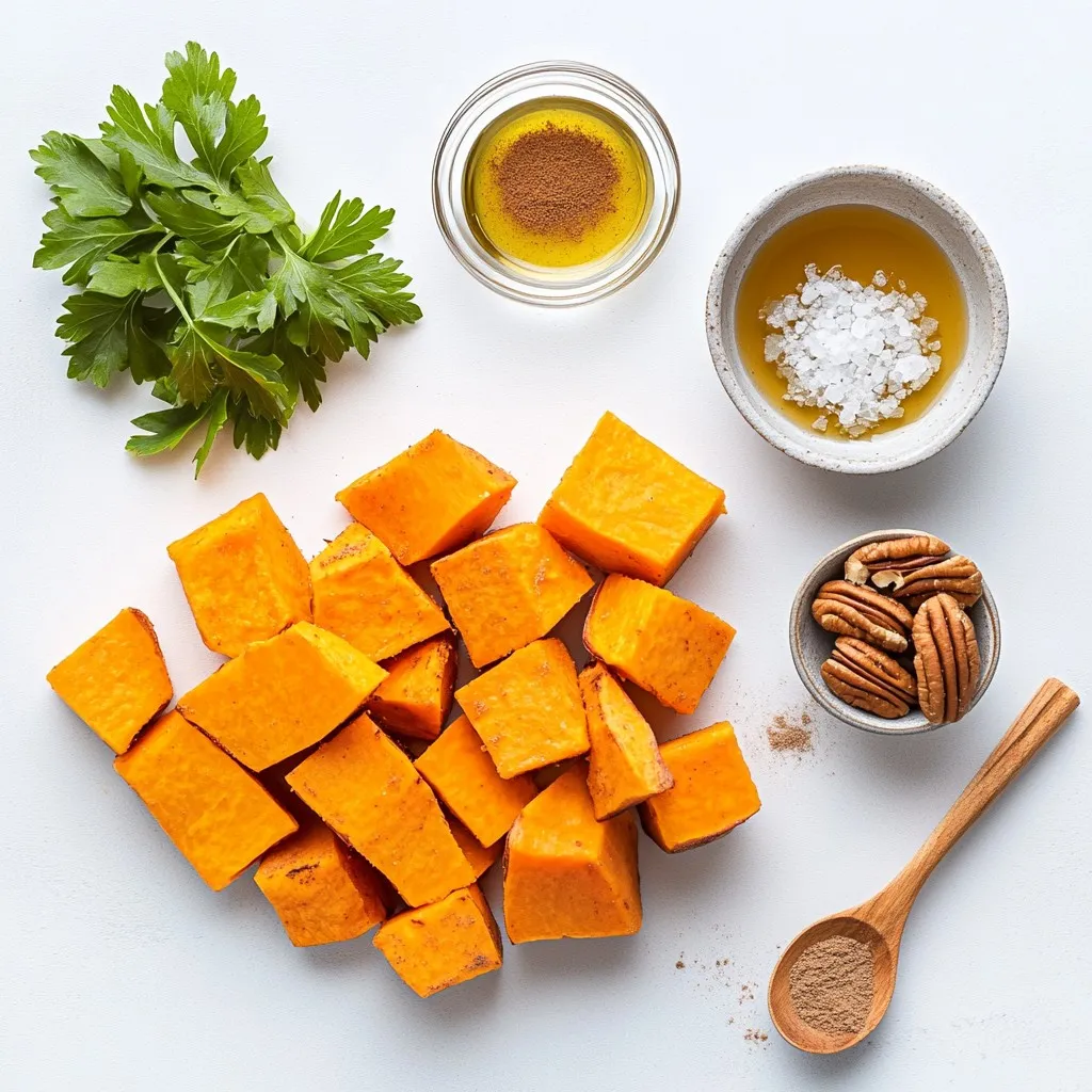 To make maple pecan roasted sweet potatoes, you need a few simple ingredients. Each one adds flavor and texture to the dish.