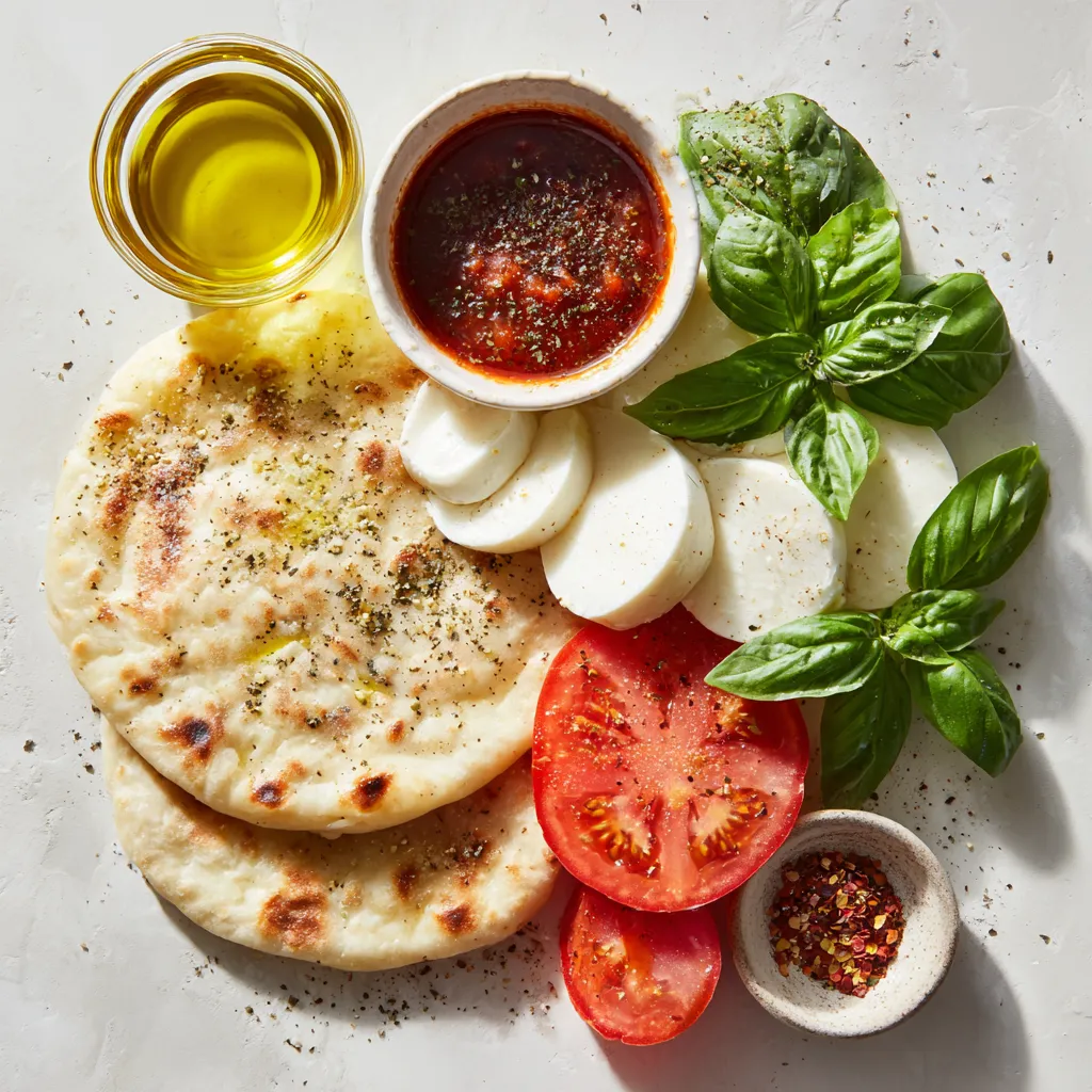 Here’s what you need for a tasty Margherita Flatbread Pizza: