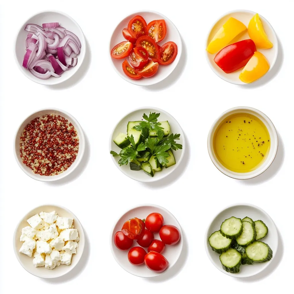 To make this vibrant Mediterranean quinoa salad, gather these fresh ingredients: