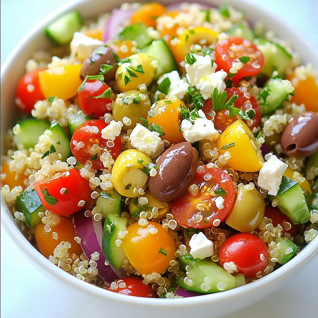 - Fresh and Vibrant: This Mediterranean Quinoa Salad is packed with colorful vegetables that not only look great but also bring a refreshing taste to your plate.