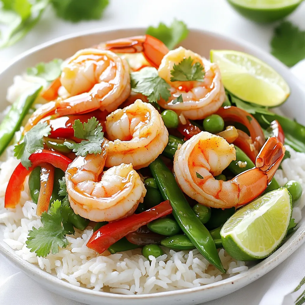 When I make this stir fry, I always start with fresh shrimp. They should be peeled and deveined. This makes them tender and easy to cook. For vegetables, I love using red bell pepper and snap peas. The red bell pepper adds color and sweetness. Snap peas give a nice crunch and freshness.