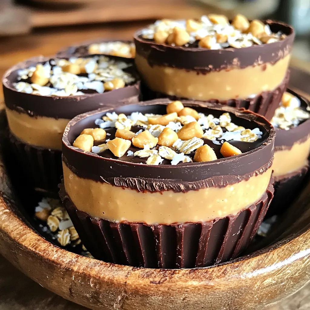 These simple ingredients come together to create a rich and satisfying treat. Each element adds its unique flavor and texture. The rolled oats form the base, giving that hearty feel. Natural peanut butter brings creaminess and protein. Honey or maple syrup adds sweetness, while cocoa powder gives a rich chocolate taste. Vanilla extract enhances the flavor, and salt balances everything out. The dark chocolate chips melt in your mouth, making each bite a delight. For a finishing touch, choose optional toppings that will make your cups even more special.