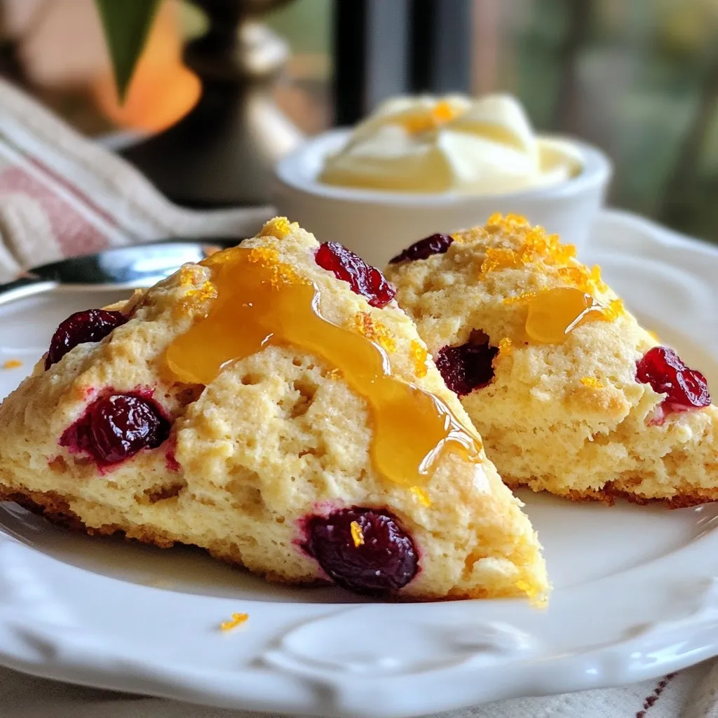 Delicious scones infused with citrus and cranberries, perfect for breakfast or a snack.