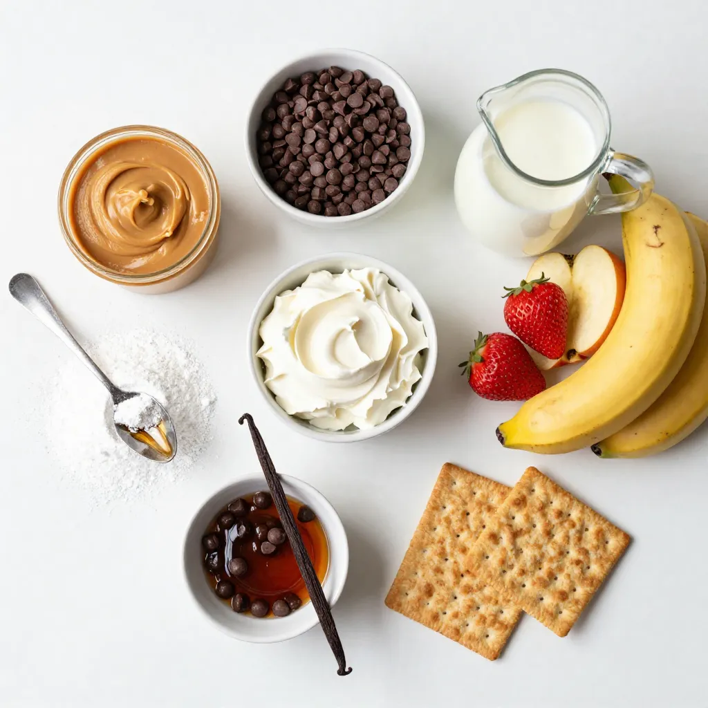 The main ingredients create a rich and smooth base. Creamy peanut butter gives a nutty flavor. Cream cheese adds a soft texture. Powdered sugar sweetens the dip, making it delightful.