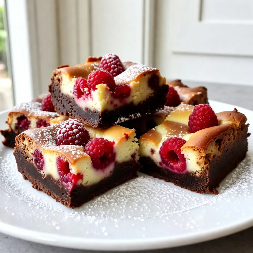 Deliciously rich brownies swirled with creamy cheesecake and fresh raspberries.