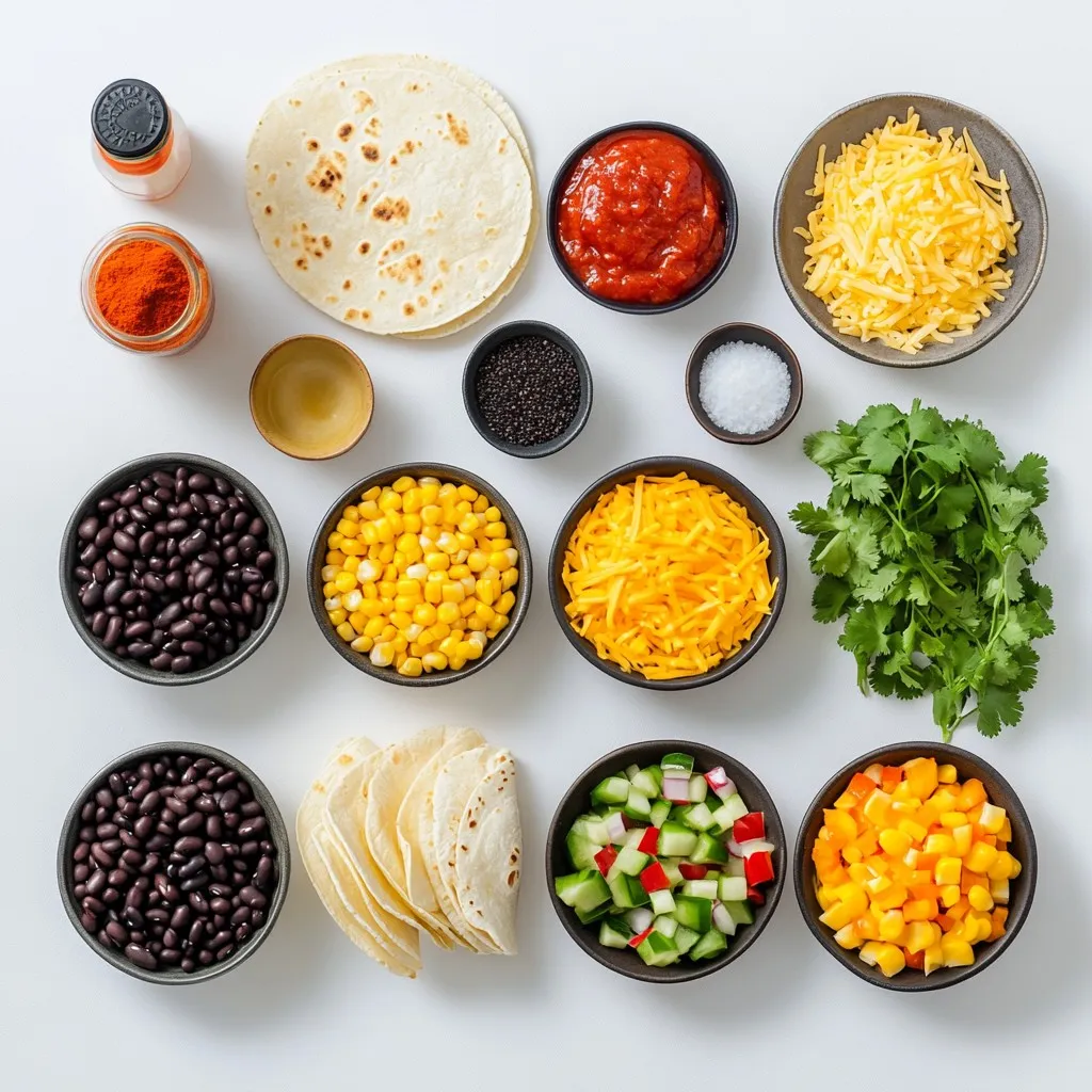 To make spicy black bean enchiladas, gather your ingredients first. You will need black beans, corn, bell peppers, onion, garlic, and spices. Have corn tortillas and enchilada sauce ready too. This prep makes cooking easier.
