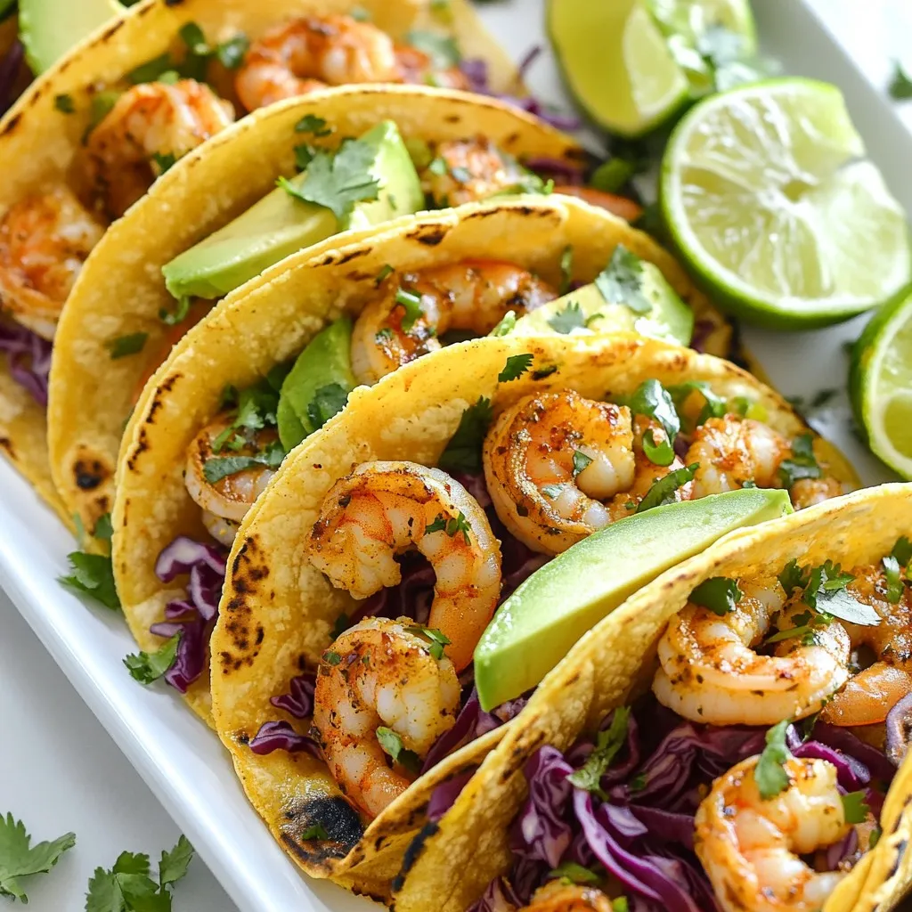 To make delicious spicy garlic shrimp tacos, you need fresh and flavorful ingredients. Here’s what you will need: - 1 lb large shrimp, peeled and deveined - 4 cloves garlic, finely minced - 2 tablespoons extra virgin olive oil - 1 teaspoon smoked paprika - 1 teaspoon cayenne pepper (adjust for desired heat) - 1 teaspoon ground cumin - 1 tablespoon fresh lime juice - Salt and freshly ground black pepper to taste - 8 small corn tortillas The shrimp is the star here. Choose large, fresh shrimp for the best taste. Seasonings bring the shrimp to life. Use these key flavors to enhance your dish: - 4 cloves of minced garlic add a strong, yummy taste. - Smoked paprika gives a hint of smokiness. - Cayenne pepper adds heat; adjust this to your liking. - Ground cumin offers a warm, earthy flavor. - Fresh lime juice brightens everything up. - Salt and pepper bring out the flavors perfectly. These seasonings work together to create a bold and tasty shrimp taco. Toppings make your tacos fun and colorful. Here are some great options to try: - 1 ripe avocado, sliced into thin wedges - 1 cup red cabbage, finely shredded - 1/4 cup fresh cilantro, roughly chopped - Lime wedges, for serving The creamy avocado balances the spice. Shredded red cabbage adds crunch, while cilantro brings freshness. Don't forget lime wedges for an extra zing! {{ingredient_image_2}} Start by taking one pound of large shrimp. Peel and devein them if needed. In a mixing bowl, add the shrimp with four finely minced garlic cloves. Pour in two tablespoons of extra virgin olive oil. Add one teaspoon of smoked paprika, one teaspoon of cayenne pepper, and one teaspoon of ground cumin. Squeeze in one tablespoon of fresh lime juice. Don’t forget to add salt and freshly ground black pepper to taste. Gently toss everything together. Let the shrimp marinate for about 15 minutes. This lets the flavors soak in and makes the shrimp tasty. Once the shrimp has marinated, heat a large non-stick skillet on medium-high heat. Once hot, carefully place the shrimp in a single layer. Cook them for about 2 to 3 minutes on each side. You know they’re done when they turn pink and opaque. Remove the skillet from the heat. The shrimp will be juicy and full of flavor. While the shrimp cooks, prepare the tortillas. You can warm them in two ways. First, use a dry skillet over low heat. Warm each tortilla for about 30 seconds on each side. Alternatively, place the tortillas in a microwave for about 10 to 15 seconds. This makes them soft and easy to fold. Now it’s time to build your tacos! Take one warmed tortilla and place a few shrimp in the center. Next, add slices of ripe avocado for creaminess. Top it off with a generous pile of finely shredded red cabbage for crunch. Finally, sprinkle fresh cilantro on top for extra flavor. Serve the tacos right away with lime wedges on the side. Squeezing fresh lime juice over the tacos adds a zesty kick that everyone will love. To make the best spicy garlic shrimp, start with fresh shrimp. Fresh shrimp tastes better than frozen. Use large shrimp for a nice bite. Mince the garlic finely for a stronger flavor. Marinate the shrimp for at least 15 minutes. This time lets the spices soak in well. Don’t skip the lime juice; it brightens the dish. Adjust cayenne pepper to control heat. More cayenne means spicier tacos. Make sure to sauté the shrimp until they turn pink and opaque. This shows they are cooked just right. Warming the tortillas is key for great texture. You can use a dry skillet over low heat. Just heat each side for about 30 seconds. This makes them soft and pliable. A microwave is handy too. Place them in for 10-15 seconds. Be careful, as they can get too hot. Warm tortillas hold the fillings better. They also taste better and are easier to eat. Serving the tacos well makes them look inviting. Use a colorful platter to arrange the tacos. Place lime wedges around the tacos for a pop of color. Fresh cilantro adds a nice touch too. Scatter it over the tacos. You can also add a small bowl of salsa or hot sauce on the side. This gives guests a choice for extra flavor. Overall, a beautiful presentation enhances the meal experience. Pro Tips Marinate Longer for More Flavor: If you have the time, let the shrimp marinate for up to 30 minutes. This will deepen the flavors, making the dish even more delicious. Choose the Right Shrimp: Opt for wild-caught shrimp if available. They tend to have better flavor and texture compared to farm-raised varieties. Customize Your Heat Level: Adjust the amount of cayenne pepper based on your spice tolerance. Start with less if you're unsure, as you can always add more later. Perfect Tortilla Texture: For the best texture, warm tortillas in a skillet rather than the microwave. This keeps them pliable and adds a slight toasty flavor. {{image_4}} You can swap shrimp for chicken, fish, or tofu. Each option brings its own flavor. For chicken, use bite-sized pieces and marinate like shrimp. For fish, try a flaky white fish like cod. If you’re using tofu, press it first to remove water, then cut it into cubes. Marinate and cook just like the shrimp. Tacos are all about fun toppings. Try sliced radishes for crunch, or pickled onions for zing. Fresh corn or black beans can add more texture and flavor. For a creamy element, add a dollop of sour cream or a drizzle of yogurt. You can also use mango salsa for a sweet twist. To make these tacos vegetarian, use mushrooms or jackfruit instead of shrimp. Both absorb flavors well and have great texture. Season them like the shrimp and sauté until golden. Add grilled veggies like bell peppers and zucchini for more depth. Don’t forget to pile on your favorite toppings for an amazing flavor boost! To store leftover shrimp tacos, place them in an airtight container. Make sure to separate the shrimp from the tortillas. This keeps the tortillas from getting soggy. Store in the fridge for up to two days. If you have any toppings, like avocado or ca