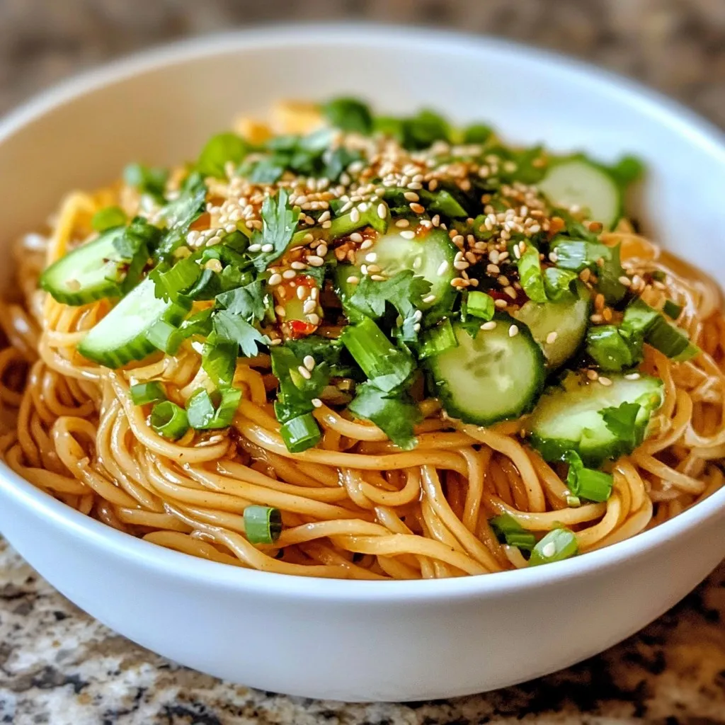 For an elegant touch, serve the noodles in wide, shallow bowls. Artistically arrange the cucumber slices on top, and finish with a light dusting of extra sesame seeds and a generous handful of cilantro. Enjoy this dish chilled, making it a perfect refreshing meal!