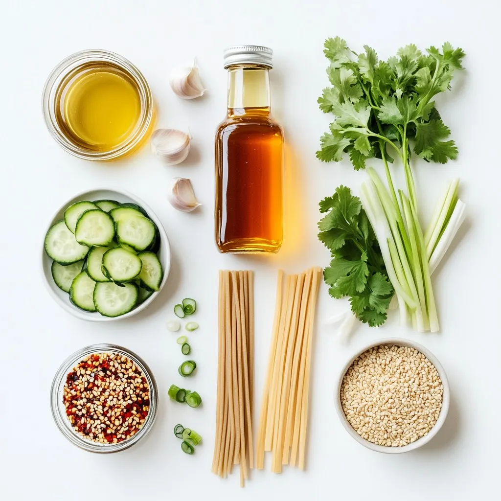 When you gather these ingredients, you set yourself up for a tasty dish. Each item plays a role in making the noodles flavorful and refreshing. Enjoy this mix of textures and tastes!