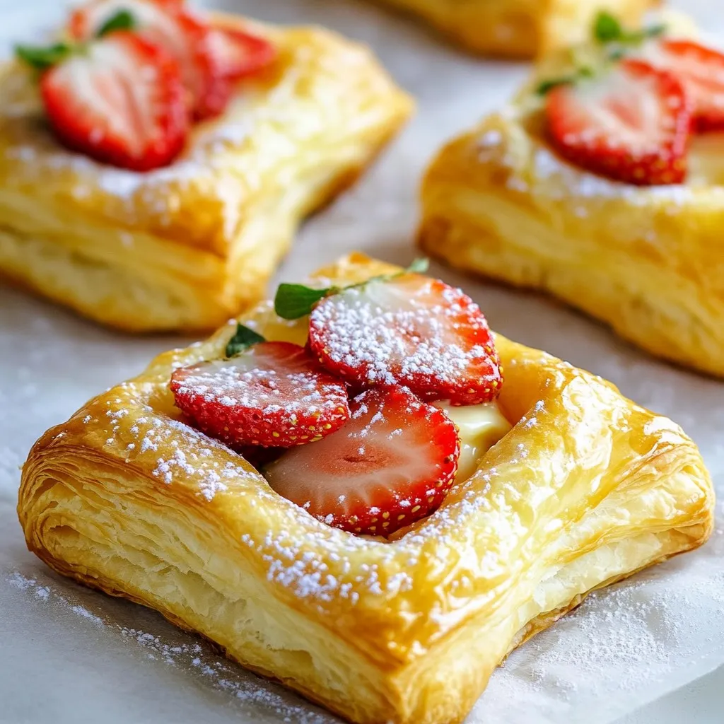 Delicious danishes filled with cream cheese and fresh strawberries, perfect for breakfast or dessert.