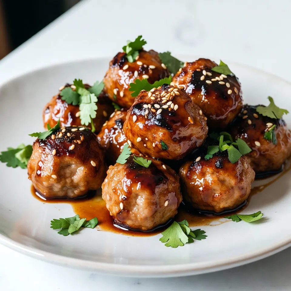- 1 lb ground beef (or chicken/turkey) - 1/4 cup breadcrumbs - 1/4 cup finely chopped green onions - 1 large egg - 2 cloves garlic, minced - 1 teaspoon fresh ginger, grated - Salt and black pepper to taste - 1/3 cup teriyaki sauce (store-bought or homemade) - 1 tablespoon sesame oil - 1 tablespoon rice vinegar - Toasted sesame seeds for garnish - Fresh cilantro for garnish (optional) Creating teriyaki glazed meatballs is easy and fun. The main ingredients start with ground beef. You can also use chicken or turkey. I love using lean meat for a healthier touch. Next, I add breadcrumbs for texture. Chopped green onions bring fresh flavor. A large egg helps bind the mixture. Minced garlic and grated ginger add a nice zing. Don’t forget salt and black pepper to taste. For the sauce, teriyaki sauce is key. You can use store-bought or make it at home. I prefer homemade for a personal touch. I mix in sesame oil and rice vinegar for extra depth. Finally, toasted sesame seeds make a great garnish. Fresh cilantro can add color and taste, but it's optional. These ingredients come together to make a tasty dish that everyone will enjoy! {{ingredient_image_2}} - Combine ground meat, breadcrumbs, green onions, egg, garlic, ginger, salt, and pepper. - Mix thoroughly using hands or a spatula. Start by gathering a large bowl. Add the ground meat of your choice. I prefer beef, but chicken or turkey works well too. Next, toss in the breadcrumbs and chopped green onions. The egg binds everything together. The minced garlic and grated ginger bring in great flavor. Don’t forget to season with salt and pepper. Using your hands or a spatula, mix it all until well combined. This step is key for tasty meatballs. - Preheat oven to 400°F (200°C). - Shape meat mixture into 1-inch meatballs. - Arrange on a parchment-lined baking sheet. Now, let’s get the oven ready. Preheat it to 400°F. While it heats, take small amounts of the meat mixture and roll them into 1-inch meatballs. This size helps them cook evenly. Place each meatball on a baking sheet lined with parchment paper. The paper will help with cleanup and prevent sticking. - Combine teriyaki sauce, sesame oil, and rice vinegar in a saucepan. - Simmer for about 5 minutes until slightly thickened. While the meatballs bake, let’s make the teriyaki glaze. In a small saucepan, mix the teriyaki sauce, sesame oil, and rice vinegar. Stir it together gently. Place it over medium heat and let it simmer. Keep an eye on it; after about 5 minutes, it should thicken slightly. This glaze gives the meatballs their sweet and savory flavor. - After baking, coat meatballs with the teriyaki glaze. - Broil for 1-2 minutes for extra stickiness and color. Once the meatballs are golden brown and cooked through, take them out of the oven. Transfer them to a large bowl. Pour the teriyaki glaze over the meatballs. Toss them gently to coat each one evenly. To make them extra sticky and shiny, put them back on the baking sheet and broil for 1-2 minutes. Keep a close watch to avoid burning. Finally, they’re ready to be served! To make great meatballs, mix gently. A light hand keeps them tender. If you mix too hard, they may get tough. Aim for even sizes when shaping. This ensures they all cook evenly. For a special touch, try making your own teriyaki sauce. You can adjust the flavors to fit your taste. Want a kick? Add chili flakes for heat. It gives the sauce an exciting twist. When broiling, keep your eyes on the meatballs. They can burn quickly if left unattended. Each oven is different, so adjust your broiling time based on its heat. A few extra minutes can make a big difference. Pro Tips Use Fresh Ingredients: Always opt for fresh garlic and ginger for the best flavor. Fresh ingredients enhance the overall taste of your teriyaki glaze and meatballs. Experiment with Meat: While beef is delicious, try using ground chicken or turkey for a lighter option. Each type of meat brings its unique flavor and texture to the dish. Adjust the Sweetness: If you prefer a sweeter glaze, add a touch of honey or brown sugar to the teriyaki mixture. This can help balance out the savory flavors of the meatballs. Make Ahead: Prepare the meatballs in advance and store them in the fridge or freezer. You can easily reheat them and add the glaze when ready to serve, making meal prep a breeze. {{image_4}} You can swap out the ground beef for ground chicken or turkey. These options are lighter and just as tasty. They still soak up the teriyaki glaze well. If you want a vegetarian dish, try using plant-based ground meat. It works great and keeps all the flavors you love. Want to make your teriyaki glaze sweeter? Add some pineapple juice. It pairs nicely with the salty flavors. You can also mix in chopped vegetables like bell peppers or carrots into the meat. This adds crunch and nutrition to your dish. Serve your teriyaki glazed meatballs with jasmine rice. The rice soaks up the sauce and makes each bite delicious. Stir-fried vegetables are another great side. They add color and flavor to your meal. For parties, serve the meatballs as appetizers on toothpicks. They are easy to grab and enjoy! You can store your cooked meatballs simply. Refrigerate leftovers in an airtight container for up to 3 days. When you want to enjoy them again, reheat them in the microwave or oven for best results. This way, they stay tasty and juicy. If you want to save some for later, freeze the uncooked meatballs. Place them on a baking sheet and freeze until firm. Then, transfer them to a freezer bag. When you are ready to bake them, just thaw before cooking. Cooked meatballs can also freeze well. Store them in a freezer-safe container for up to a month. To reheat your meatballs, thaw them overnight in the fridge. This helps them warm evenly. When reheating, add a splash of teriyaki sauce. This keeps them moist and adds flavor. Enjoy! Teriyaki sauce is a blend of soy sauce, sake, mirin, and sugar for sweetness. This mix gives 