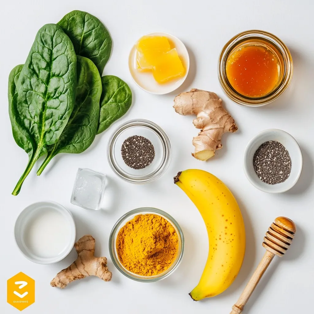 Each ingredient plays a key role in making this smoothie delicious and healthy. The frozen banana gives a creamy feel. Fresh spinach adds vitamins without changing the taste. Turmeric and ginger are powerful roots that boost your immune system. Honey or maple syrup sweetens it nicely. Coconut or almond milk provides a rich base. Chia seeds add fiber and good fats. Black pepper helps your body absorb turmeric better. You can add ice for a cool touch.