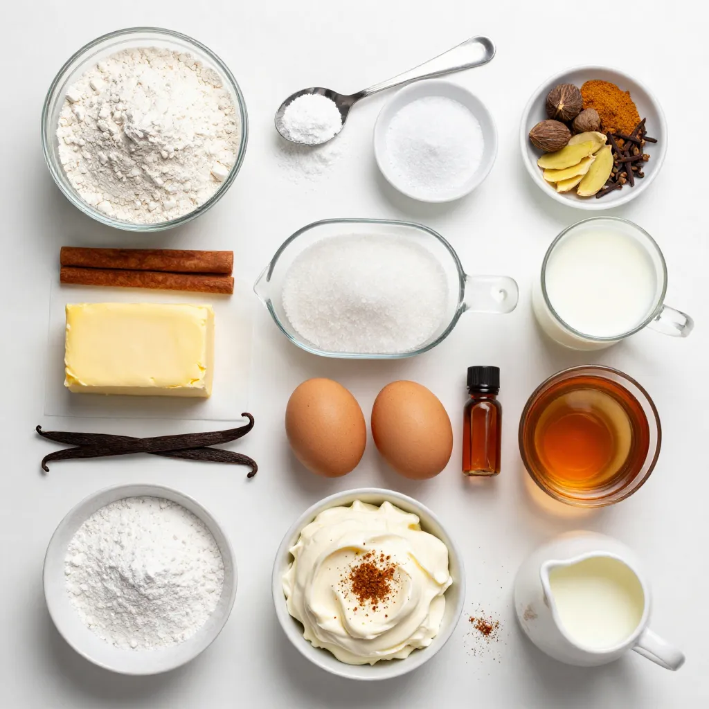 The frosting ingredients include cream cheese for richness. Powdered sugar adds sweetness and smoothness. Milk helps achieve a perfect spreadable texture. A sprinkle of the chai spice blend on top makes for a beautiful finish.
