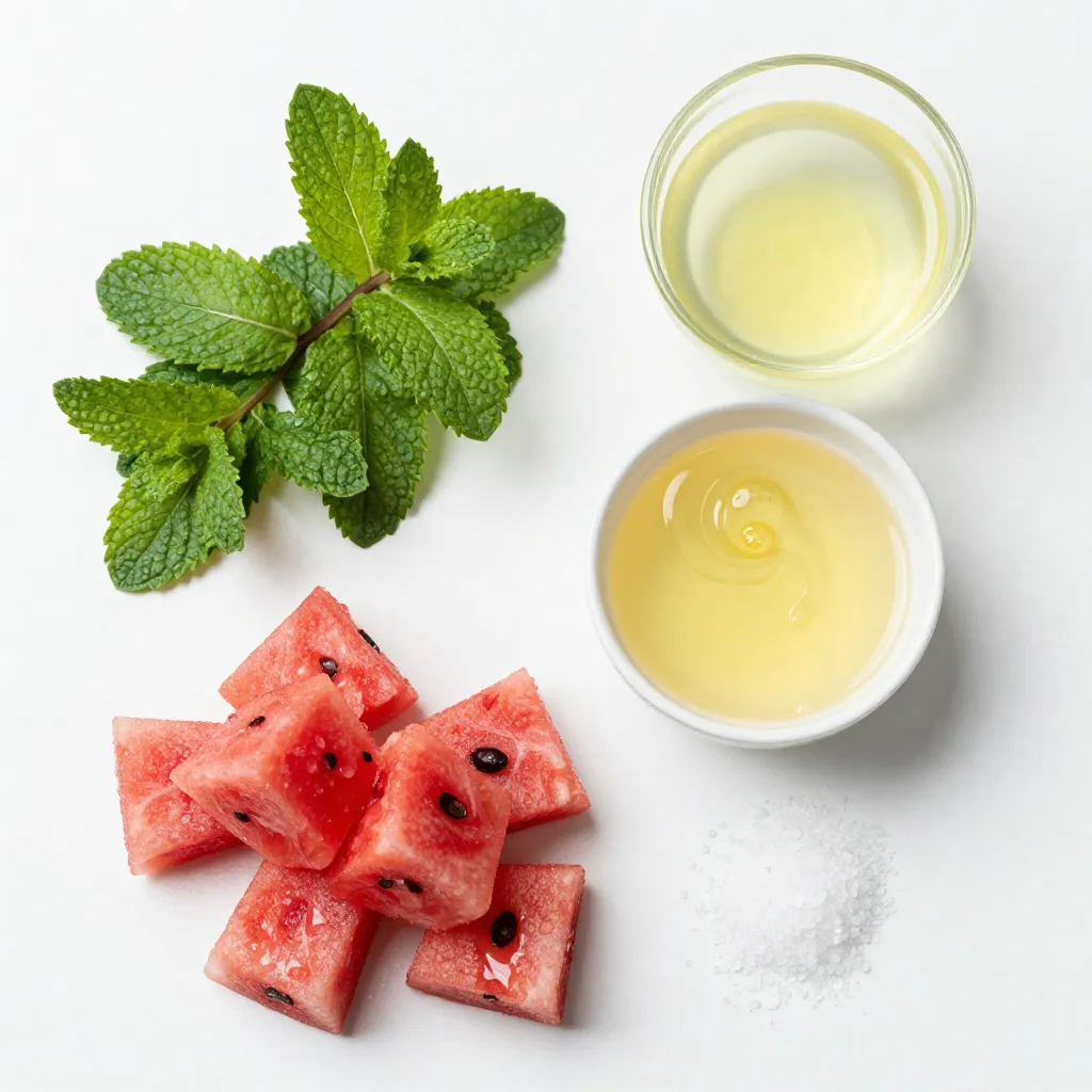 A light and refreshing sorbet made with watermelon, mint, and lime, perfect for hot days.