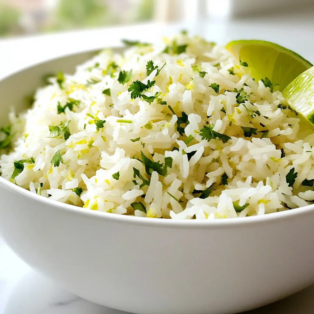 A vibrant and flavorful rice dish infused with lime and cilantro, perfect as a side.